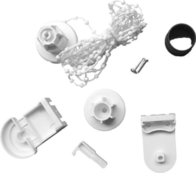 | Composition du kit | 2 équerres de fixation blanches, un embout blanc avec chaînette en PVC blanc + crochet sécurité enfant + warning tag, un embout opposé blanc, 2 adaptateurs enrouleur 25 / 28 mm noirs, vis et chevilles |
