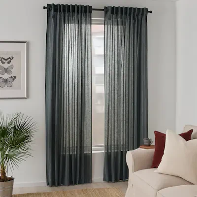 Rideau à suspendre à une tringle par les passants cachés ou à l’aide d’anneaux et de crochets.