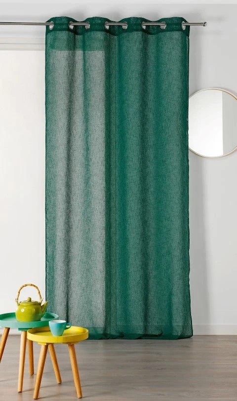 Voilage Transparent, Linum Vert Foncé L.140 X H.240 Cm